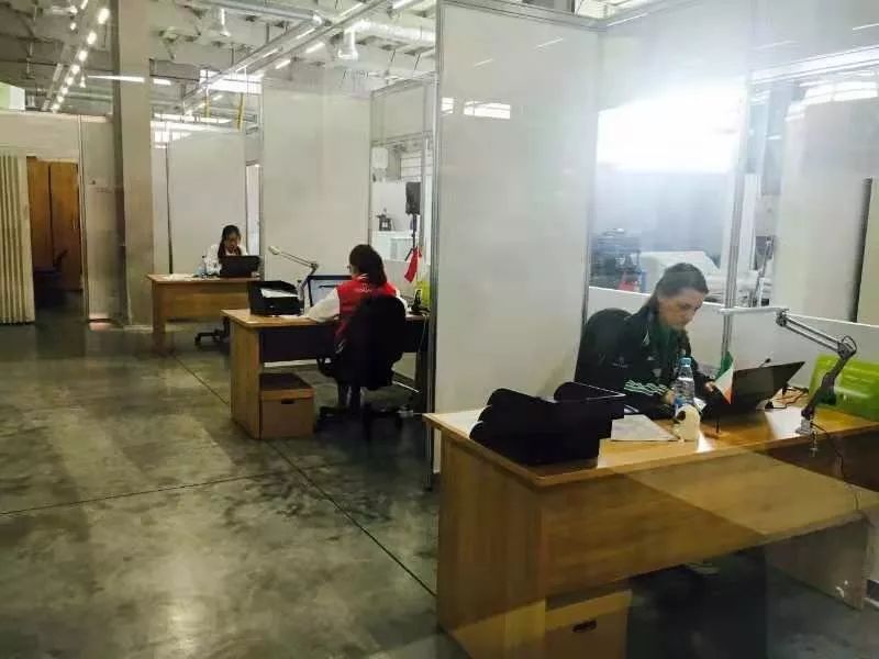 進(jìn)入賽場,過了安檢后,直入眼簾的就是一個個比賽項目區(qū)域,由不同的英文字母標(biāo)示。由于當(dāng)天只有3個小時參觀,所以執(zhí)行校長肖中圓一行結(jié)合學(xué)校開設(shè)的專業(yè)去各比賽現(xiàn)場了解。