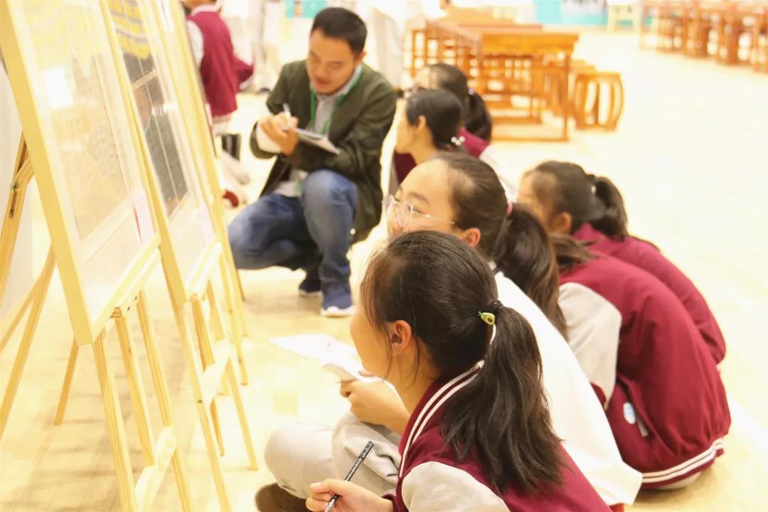 參展的一百多幅書法作品,仿佛被賦予了生命。孩子們分組觀摩書法作品,他們用心體會著書法里蘊(yùn)含的詩歌、繪畫、舞蹈和音樂,在濃厚的墨香氛圍中,感受著傳統(tǒng)文化的無邊魅力。