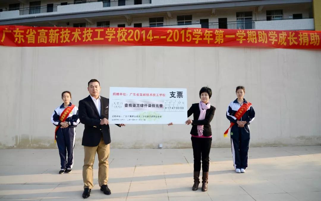 廣東省高新技術(shù)高級(jí)技工學(xué)校發(fā)展基金會(huì)成立于2012年,由張?zhí)炫嘈iL(zhǎng)發(fā)起,基金會(huì)堅(jiān)持中國(guó)共產(chǎn)黨的領(lǐng)導(dǎo),踐行社會(huì)主義核心價(jià)值體系,遵守社會(huì)風(fēng)尚,堅(jiān)持以“資助品學(xué)優(yōu)良的特困學(xué)生,幫助他們擺脫困境,激勵(lì)他們發(fā)奮讀書、立志成才;全力關(guān)愛困難教職工,傳遞溫暖、愛心互助”為愿景。2014年,張?zhí)炫嘈iL(zhǎng)向基金會(huì)捐助17.5萬(wàn)元。