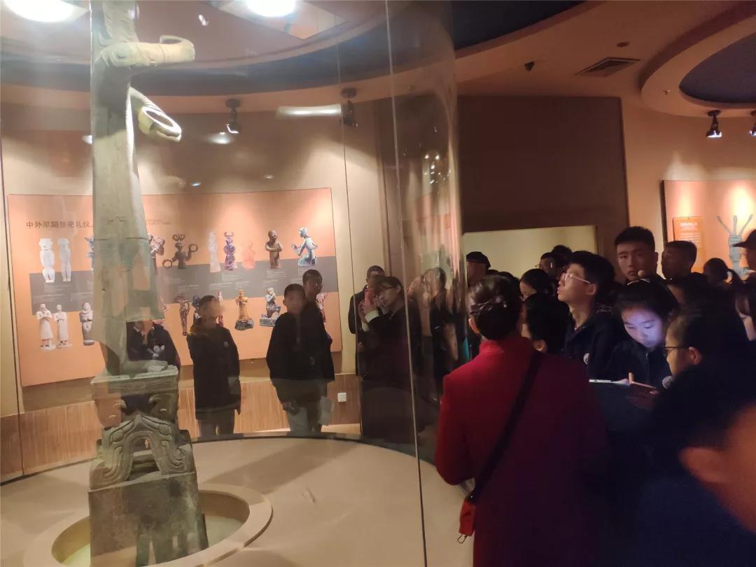 在解說員的講解下,同學(xué)們積極提問、認(rèn)真聆聽、仔細(xì)記錄。一件件珍貴文物展現(xiàn)在同學(xué)們眼前,讓人無不贊嘆古蜀人民勤勞智慧,尤其是在沒有發(fā)達(dá)的機(jī)械情況下,僅憑雙手打磨的玉石器物和那鎮(zhèn)館之寶青銅神樹!連隨行的老師都說,“連我也想研究研究古蜀文明啦!”