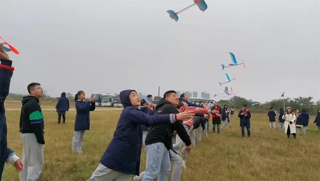 隨后,同學(xué)們分小組合作完成了飛機(jī)模型,并開始了航模表演。同學(xué)們昂首看向天空,看向那承載著自己夢想的航天飛機(jī),臉上滿是興奮、自豪的神情。