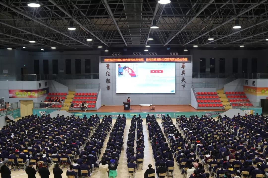 12月15日晚,衡川的體育館內(nèi)燈火通明,座無(wú)虛席,1700余名衡川師生正享受著一場(chǎng)精神的盛宴——中國(guó)口書大師和志剛、云南森林消防功臣何亮走進(jìn)“雙百講堂”,與衡川師生分享其勵(lì)志人生。
