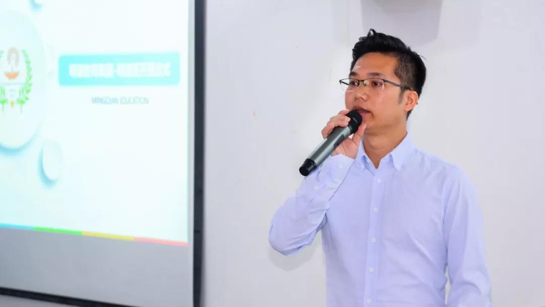 廣州明謙教育集團龍煥輝總經(jīng)理上臺致辭,龍經(jīng)理對“明謙班”做了詳細的介紹,并能借助明謙教育集團旗下的幼兒園宣傳片,從行政、教學、工作環(huán)境等方面都做了詳細的介紹。