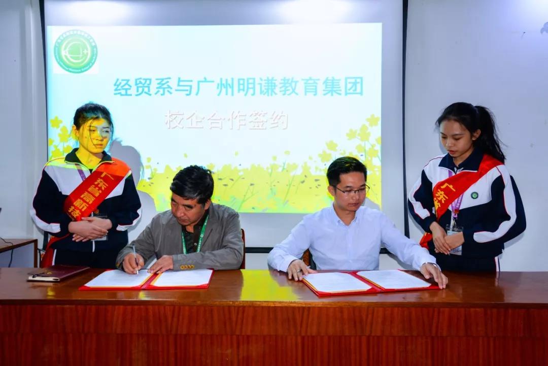 廣州明謙教育集團龍煥輝總經(jīng)理,幼兒園園監(jiān)陳楚越園長、陽光幼兒園陳海燕園長,教務處田春元處長、經(jīng)貿(mào)系向莎莎主任、經(jīng)貿(mào)系幼兒教育組林紅霞老師、經(jīng)貿(mào)系幼兒教育專業(yè)林佳峰老師、17幼師(五年制)班班主任孫啟磊老師、經(jīng)貿(mào)系邢夏盈老師出席了簽約儀式。