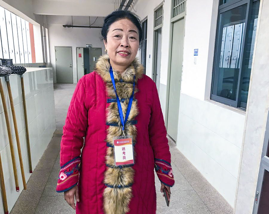 家長(zhǎng)巡考員巡視考場(chǎng)