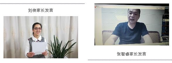 作為孩子們的第一個(gè)老師、朋友與堅(jiān)強(qiáng)后盾,劉俊同學(xué)、張智睿同學(xué)的家長作為代表發(fā)言,表示在孩子的追夢路上,一定做到理解、支持孩子的付出和努力,盡好家長的責(zé)任,在疫情的非常時(shí)期督促和教育孩子,用自律約束自己,用行動(dòng)成就自己。與此同時(shí),相信學(xué)校,配合學(xué)校,讓孩子延續(xù)學(xué)校的優(yōu)秀,不負(fù)學(xué)校和老師的期望。