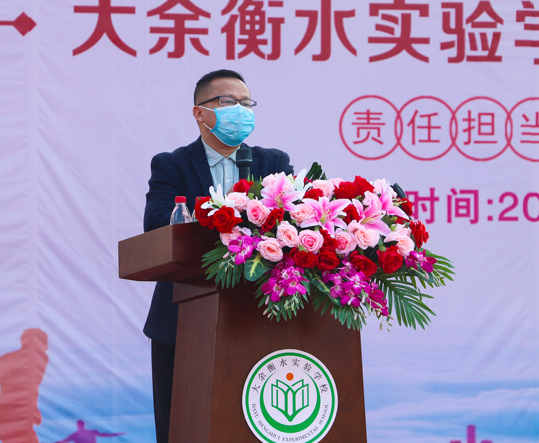 4月9日上午,大余衡水實驗學校初三、高三年級舉行復學后的第一次升旗儀式,大余縣衛(wèi)健委主任謝芳華及三位“江西省援鄂醫(yī)療隊“的抗疫醫(yī)護人員受邀參與。