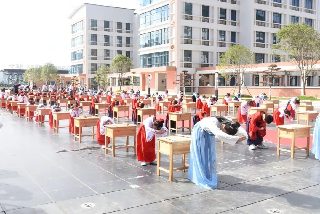 中國是禮儀之邦,素來崇尚“禮”先行。古人一生有四大重禮:開筆禮、進(jìn)階禮、感恩禮、狀元禮。開筆禮則是中國古代人生的首次大禮,古稱“啟蒙禮”、“破蒙禮”,是我國古代對少兒開始識字習(xí)禮的一種啟蒙教育形式。大余衡水實驗學(xué)校通過莊重的“開筆禮”儀式,讓步入小學(xué)的孩子感受到入學(xué)是人生的一件大事,是步入知識殿堂、走向成才的起點。