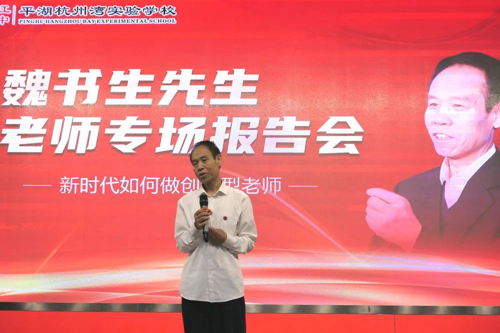 2020年9月15日上午,被喻為“穿西裝的孔子”的當(dāng)代教育家魏書(shū)生來(lái)我校為全體教職工進(jìn)行以“新時(shí)代如何做創(chuàng)新型老師”為主題的專(zhuān)場(chǎng)思想報(bào)告會(huì)。嘉興教育學(xué)院處長(zhǎng)沈俊松先生,嘉興港區(qū)社發(fā)局文教衛(wèi)副書(shū)記顧巧明先生,平湖實(shí)驗(yàn)小學(xué)教育集團(tuán)黨委書(shū)記、總校長(zhǎng)芮金良先生,乍浦高級(jí)中學(xué)黨總支書(shū)記、校長(zhǎng)曹躍平先生,平湖實(shí)驗(yàn)小學(xué)教育集團(tuán)副總校長(zhǎng)、毓秀小學(xué)校長(zhǎng)湯麗英女士,平湖杭州灣實(shí)驗(yàn)學(xué)校理事長(zhǎng)肖家興博士,北大親子教育專(zhuān)家孫一鳴老師,海寧市南苑中學(xué)、嘉興市城南中學(xué)、嘉興市運(yùn)河實(shí)驗(yàn)學(xué)校、嘉興市城南小學(xué)等學(xué)校,以及平湖市、港區(qū)兄弟學(xué)校的老師們紛紛慕名而來(lái),聆聽(tīng)長(zhǎng)者教誨。