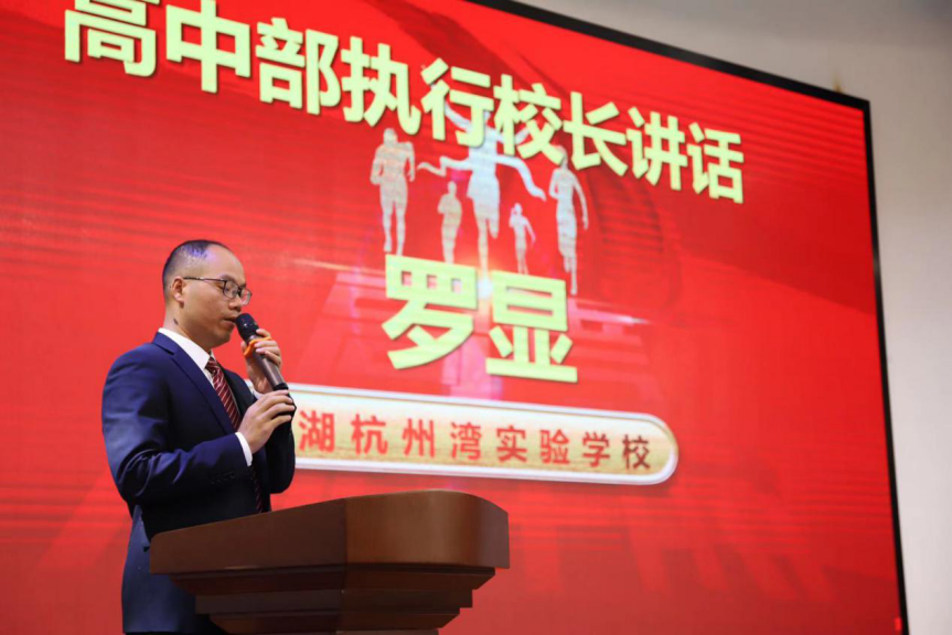高中部執(zhí)行校長羅顯發(fā)言,羅校長強調三點:一、堅定首考必勝的信念;二、嚴格按照計劃復習;三、每一個人都要竭盡全力。羅校長以獵狗和兔子的寓言故事告訴同學們盡力而為與竭盡全力的區(qū)別,激勵同學們要在首考竭盡全力,用拼搏決勝高考,提前奠定高考基石!