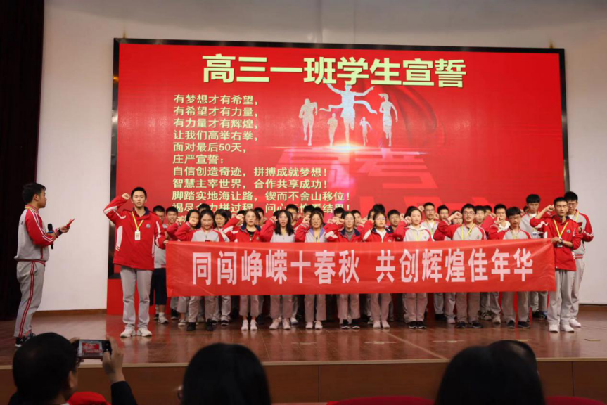 “十二載聞雞起舞寫成激揚文字 五十天臥薪嘗膽描繪錦繡前程”,高三年級的畢業(yè)生們即將展翅高飛,沒有什么能夠阻擋這群雄鷹般的青年人。一張張激情洋溢的臉龐展現(xiàn)的就是他們對于未來的期待,對于前路艱險的無畏,更是對于近在眼前的首考的信心。