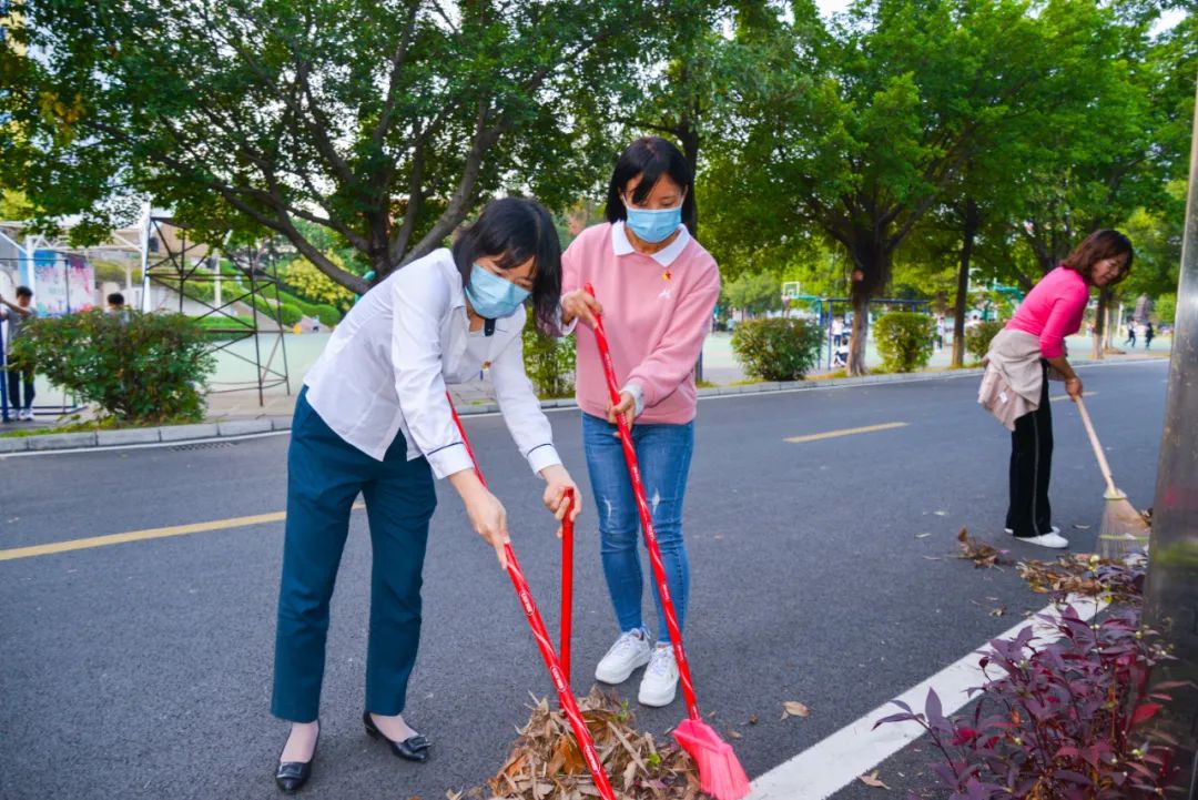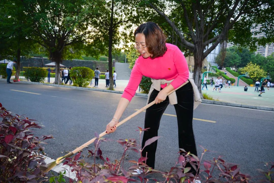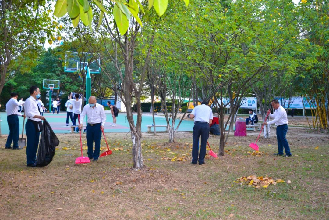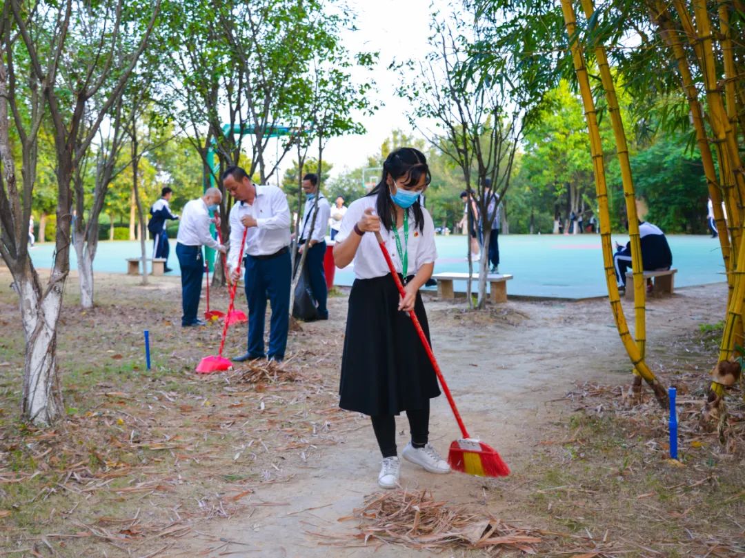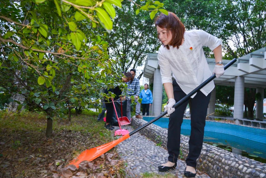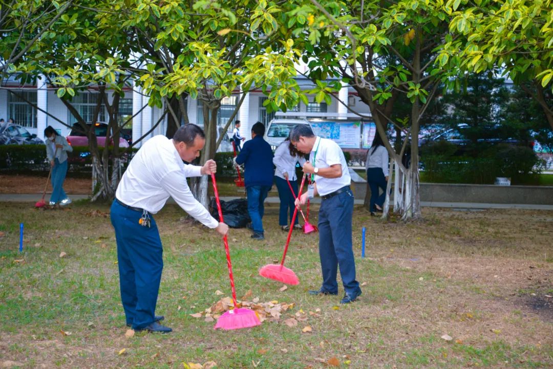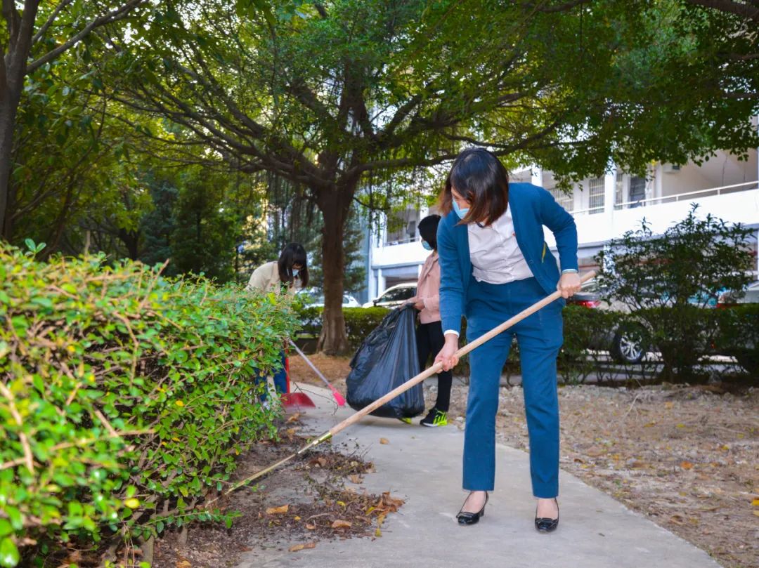 黨員們佩戴黨徽,情緒高漲,熱情飽滿,清理中堅樓小樹林及厚德大道等區(qū)域綠化帶中的落葉,不放過任何死角,大家勞動的身影猶如一道亮麗的風(fēng)景。