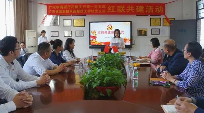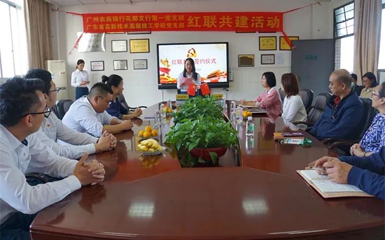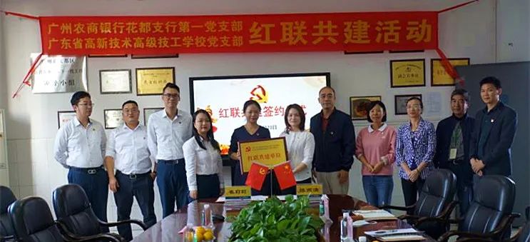 為進(jìn)一步加強(qiáng)我校黨組織建設(shè),提升新形勢下黨支部工作成效,實現(xiàn)黨建優(yōu)勢互補(bǔ),我校黨支部與廣州農(nóng)商銀行花都支行第一黨支部舉行“紅聯(lián)共建”簽約儀式,開展黨建共建活動。