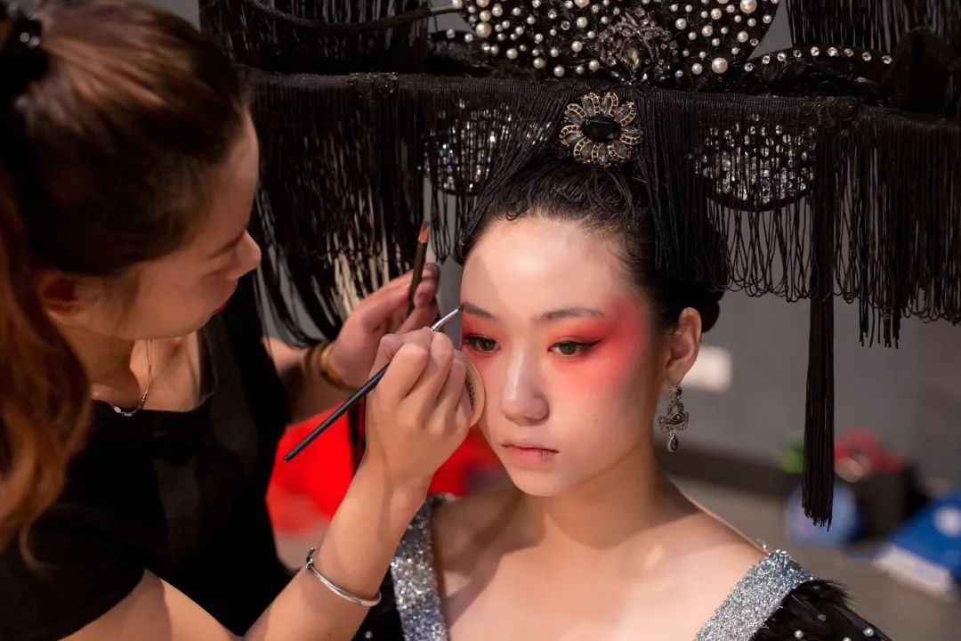 “本屆的形象設(shè)計(jì)作品都是同學(xué)們的原創(chuàng)。我們所說的形象設(shè)計(jì)主要是指人物形象設(shè)計(jì),它涵蓋了多方面比如妝面、發(fā)型、服飾、美甲甚至一些彩繪,是對人物整體形象的設(shè)計(jì),突出人物的精神面貌和氣質(zhì)。”