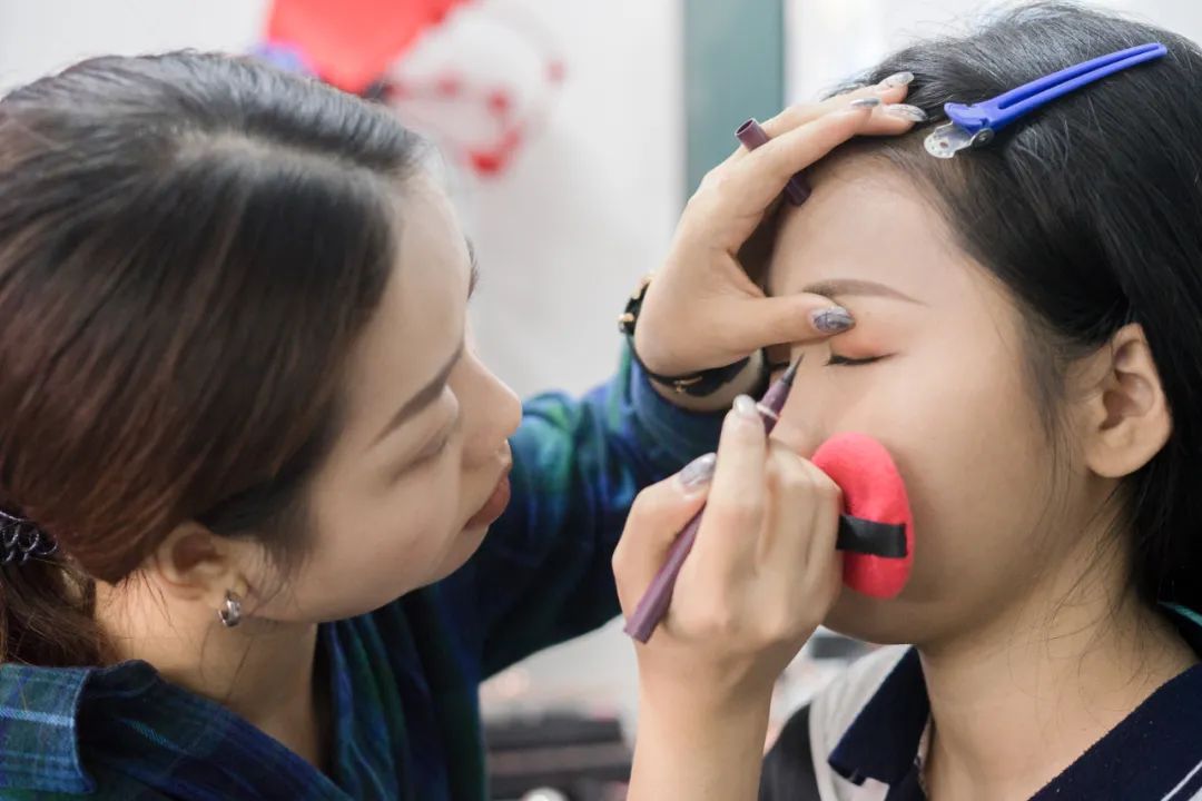 “本學(xué)期19級的化妝與造型實(shí)訓(xùn)由我授課,根據(jù)不同的應(yīng)用場合,我們會(huì)學(xué)習(xí)到晚宴妝、主持人妝、新娘妝,職場妝,還有一些特殊妝容如影視劇里面的老人妝、話劇活動(dòng)里面的創(chuàng)意妝等等,以及對應(yīng)的造型設(shè)計(jì)。”