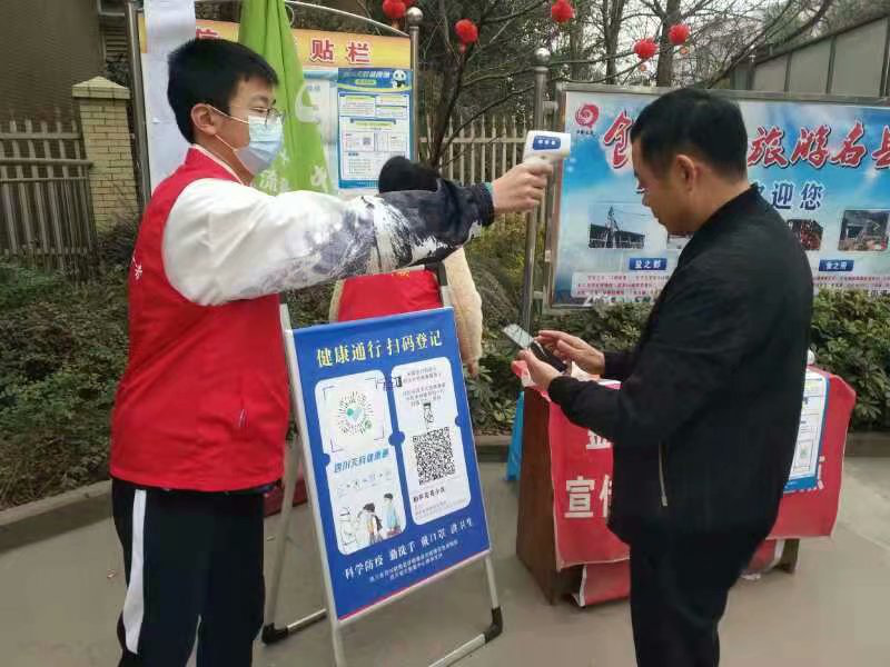 ▲ 協(xié)助社區(qū)開展入戶登記工作,為居民進行體溫監(jiān)測,并簽署居家承諾書。