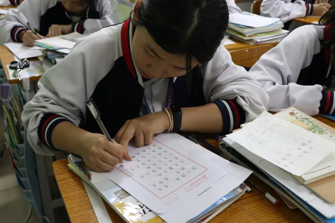 本次初賽除了語文課組老師作為評委外,還特邀了上一屆獲硬筆書法比賽第一名的韋家麗(2班)、張寶兒(4班)、牟星宇(2班)、何子嫻(3班)、于珊珊(2班)、劉語晴(4班)、王思淇(3班)、楊欣冉(3班)等8位學(xué)生作為小評委。初賽以班級為單位進(jìn)行,每位同學(xué)都有資格參賽,賽后經(jīng)評委選出入圍選手參與決賽。